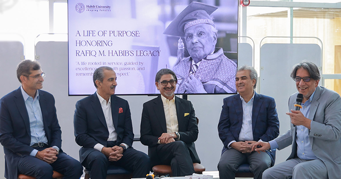Habib University hosted a heartfelt tribute titled “A Life of Purpose: Honoring Rafiq M. Habib’s Legacy” at the H. M. Habib Auditorium to celebrate the life and contributions of its Founding Chancellor, the late Rafiq M. Habib. The solemn yet inspiring afternoon was attended by his wife Mrs. Jamila Rafiq M. Habib, members of the Habib family, the University’s Board of Governors, faculty, students, donors, and friends of the institution.