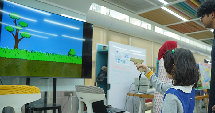 Students demonstrated creativity and innovation through projects such as automating ball extraction in foosball, vintage duck-hunting game played on a large screen, soccer simulations, educational learning games, and others.