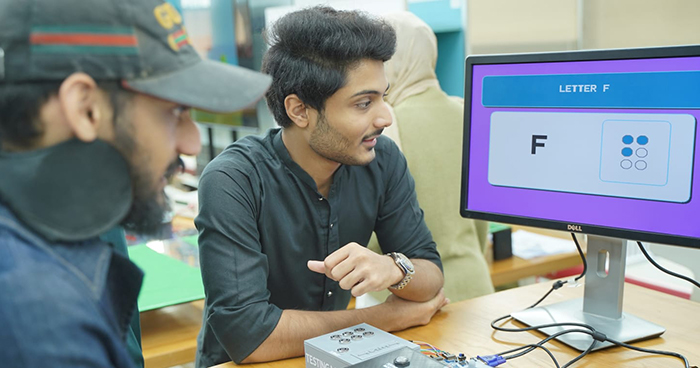 One group of students designed a braille learning game to help users and support communication with the visually impaired community, reflecting Habib University’s values of inclusion and social responsibility.
