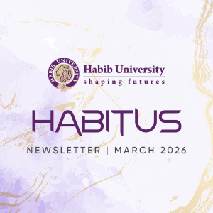 From January to March, Habib University advanced its mission of learning, innovation, and societal impact, reaching beyond campus. This issue highlights The Tale of a Trillion from our Zakat campaign, the annual Alumni Reunion, and the interdisciplinary Digital Humanities course. It also features Khidmat, a distinctive component of the Computer Science program, a HUTOPS student’s transformative summer at Stanford, this year’s Career City connecting students with professional opportunities, initiatives expanding access for students, and the university’s growing engagement with AI. Together, these stories reflect Habib University’s commitment to shaping both its community and broader society through education, innovation, and leadership.